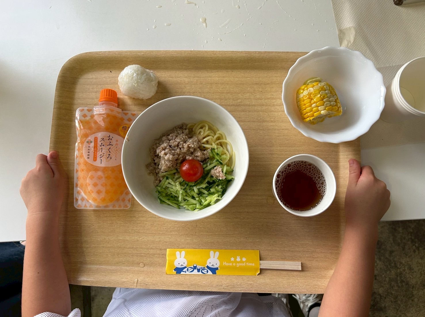 今回のメニューは、早和果樹園の社食「なでしこ食堂」でも人気メニューの1つである担々麺。お子様用に辛くないようにアレンジしています。