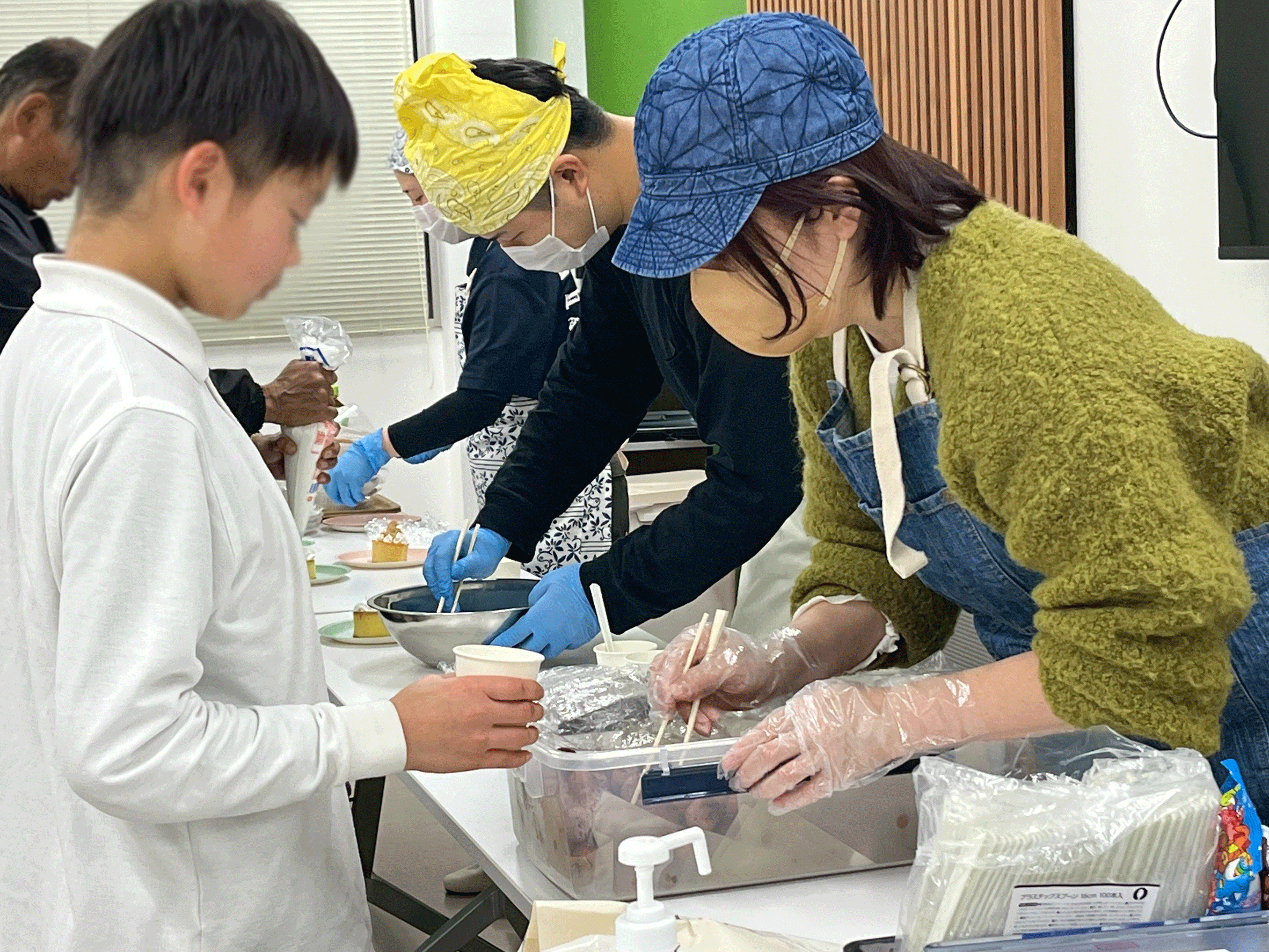 また、田辺市の新宮運送様よりいただいたスフレケーキには、ホイップクリームやビスケットを子どもたち自身で飾り付けてもらい、バレンタインケーキ作りを行いました。