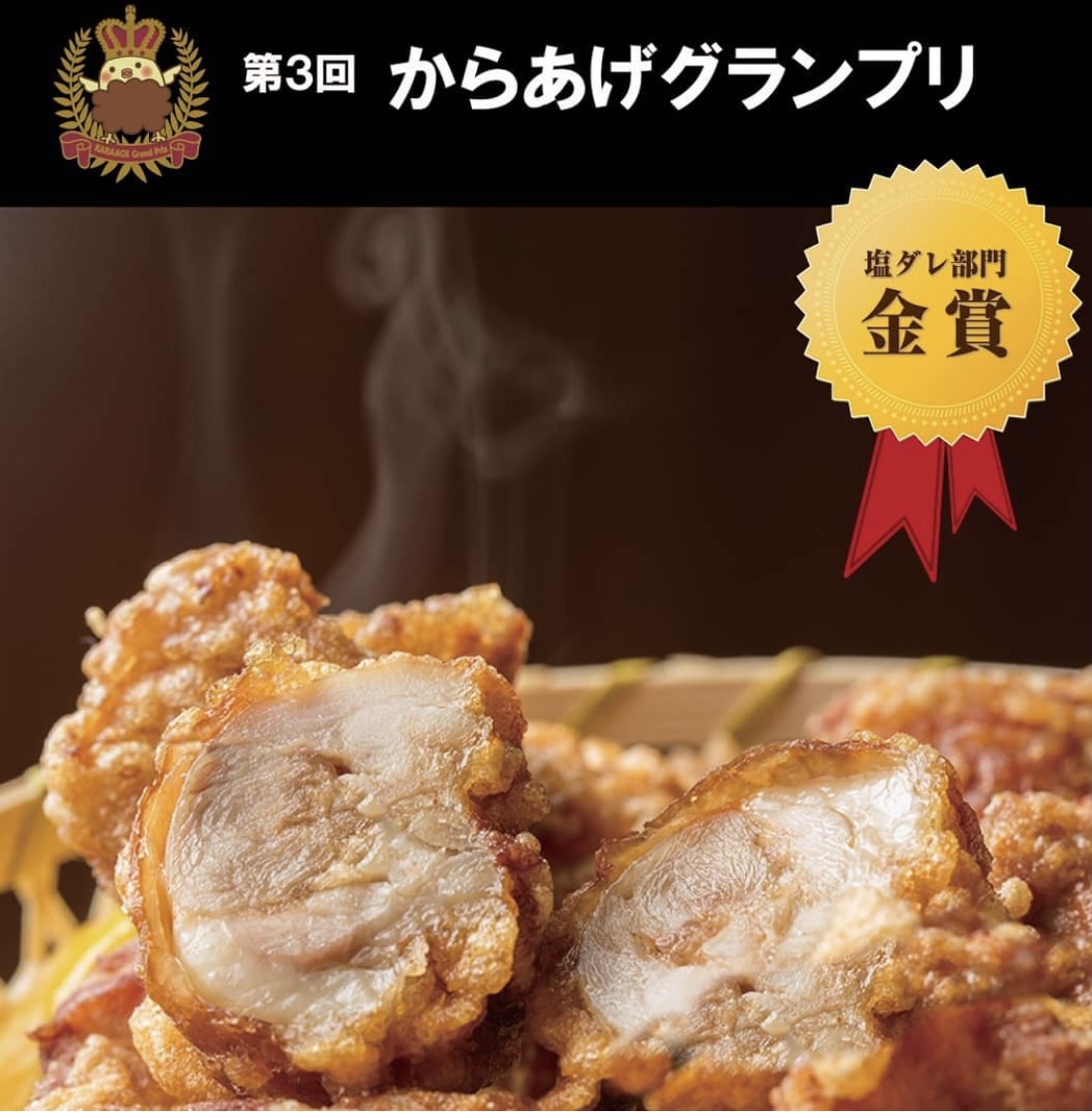 当店自慢の塩ダレ、木下おかんの秘伝みそにんにくをたっぷり加え、しっかり漬け込んだ空とぶからあげです。一口食べると元気モリモリ!!日本からあげ協会が主催するからあげグランプリの塩ダレ部門で金賞を受賞しました。魔法の手羽ダレが絡んだ手羽もと、黄金揚げもおすすめです。当店では油にこだわり、こめ油を使用してます。