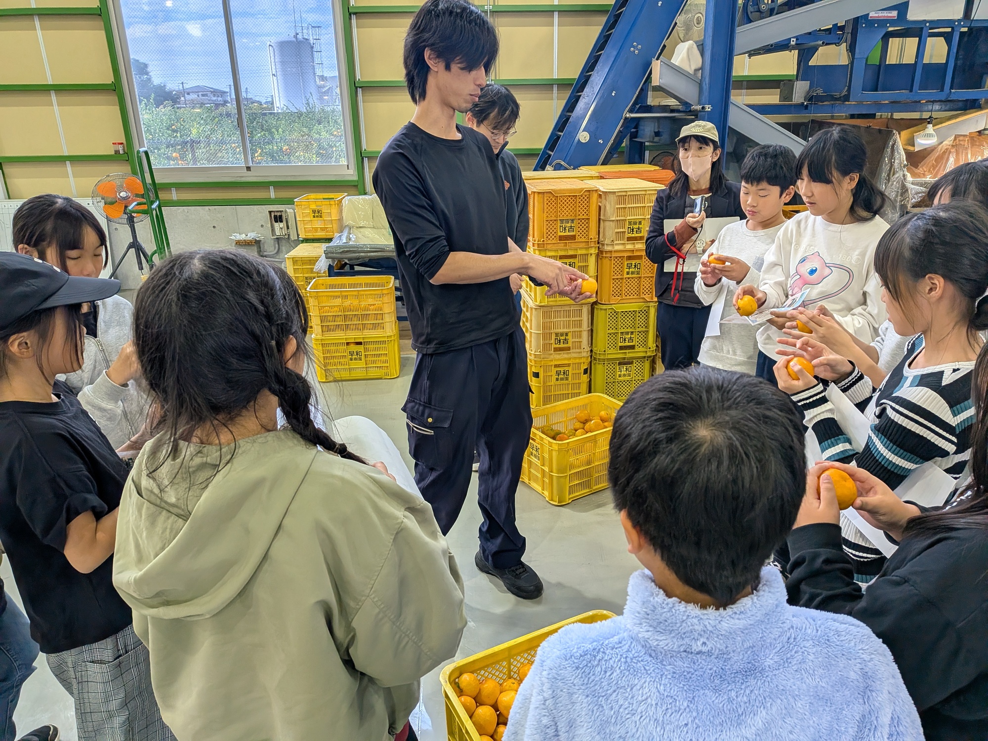 社会見学では恒例イベントです。「美味しいみかんの選び方講座」を受講してもらいました!