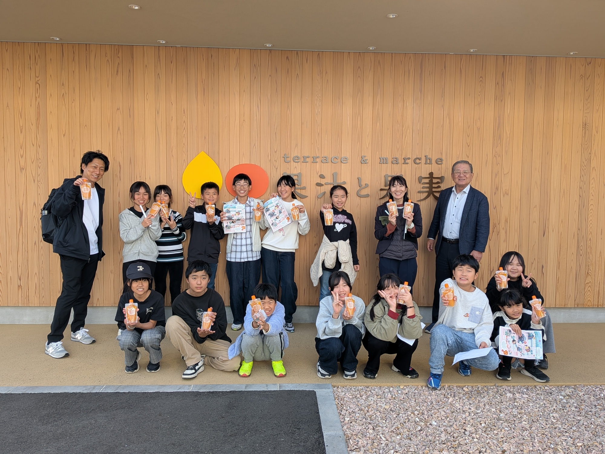 早和果樹園では小学3年生や4年生の社会見学をよく受け入れていますが、岩代小学校のみなさんは5年生と6年生でしたので、さすが高学年!大きいし落ち着きもあり、しっかりした子ども達でした!