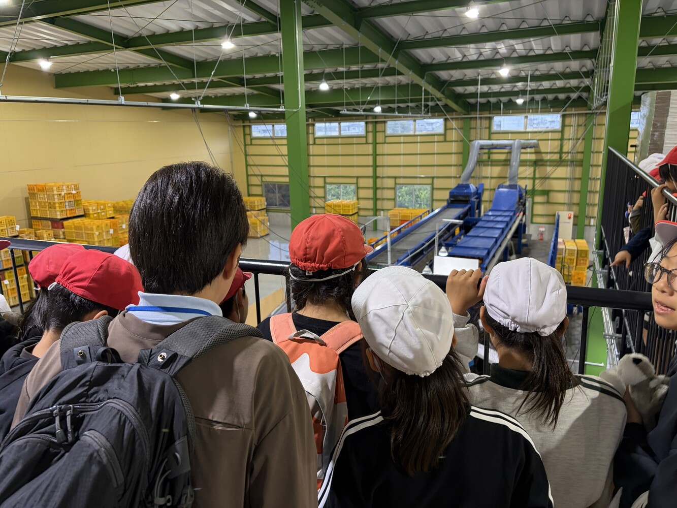 まずは選果場の見学です。大型選果機が動いていました!
