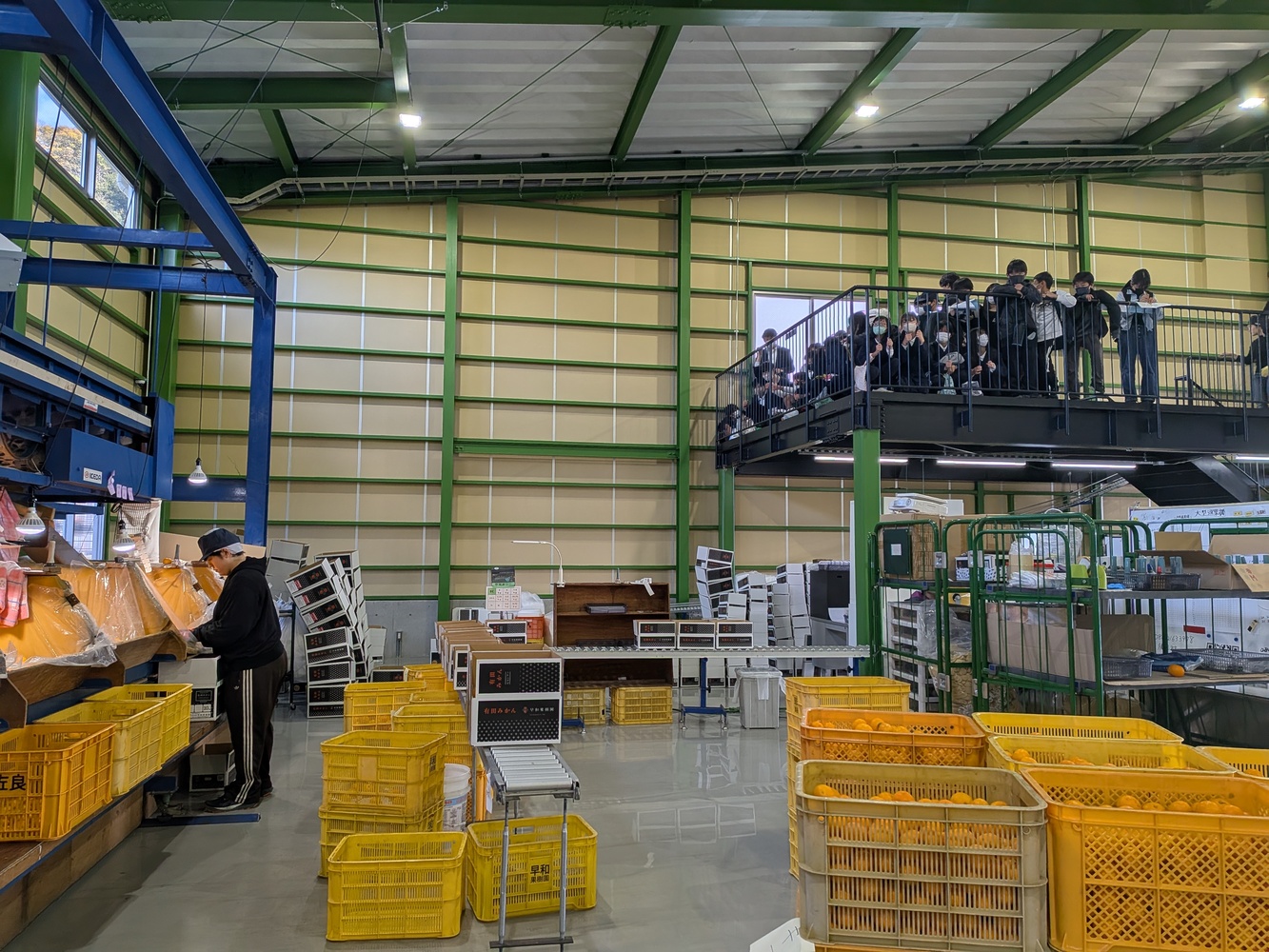 さあ、見てもらいましょう!みかん選果場・搾汁工場・直売所と会長による会社説明です!