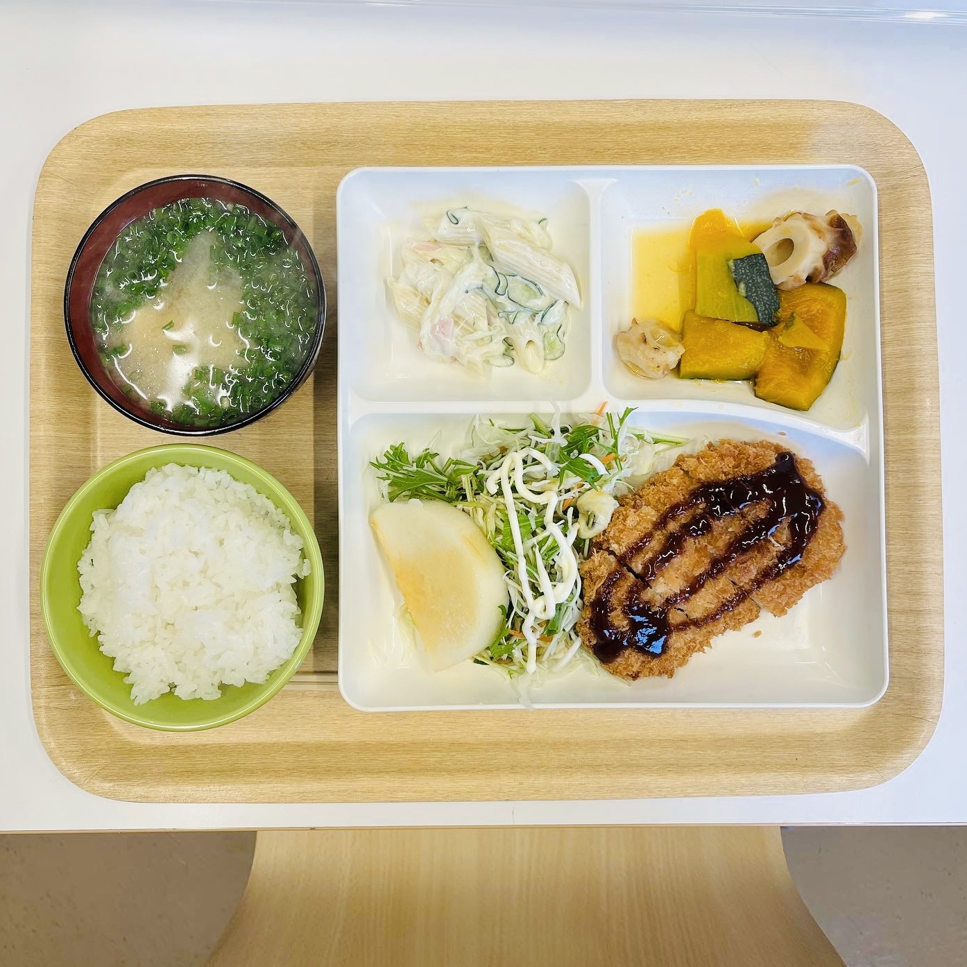 とんかつ定食です。この日はやはり食べに来る社員が多いですね。ちなみに大根だと思って真っ先にかぶりついたらラ・フランスでした(白いやつ)。あまっ!ってなりました。