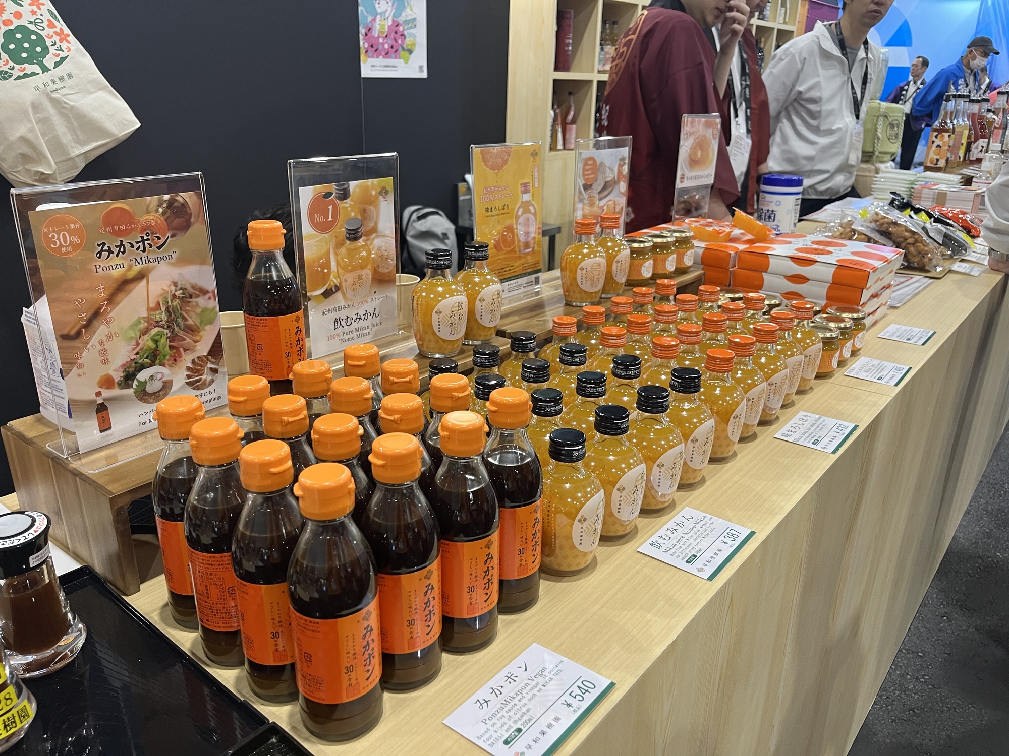初日を終えて、意外とたくさん買ってくれることにびっくり。思いビンモノなんて買ってくれないかな~と思いきや、ポン酢を中心にみなさん貪欲。万博パワーがそうさせるのか、驚きの初日でした。