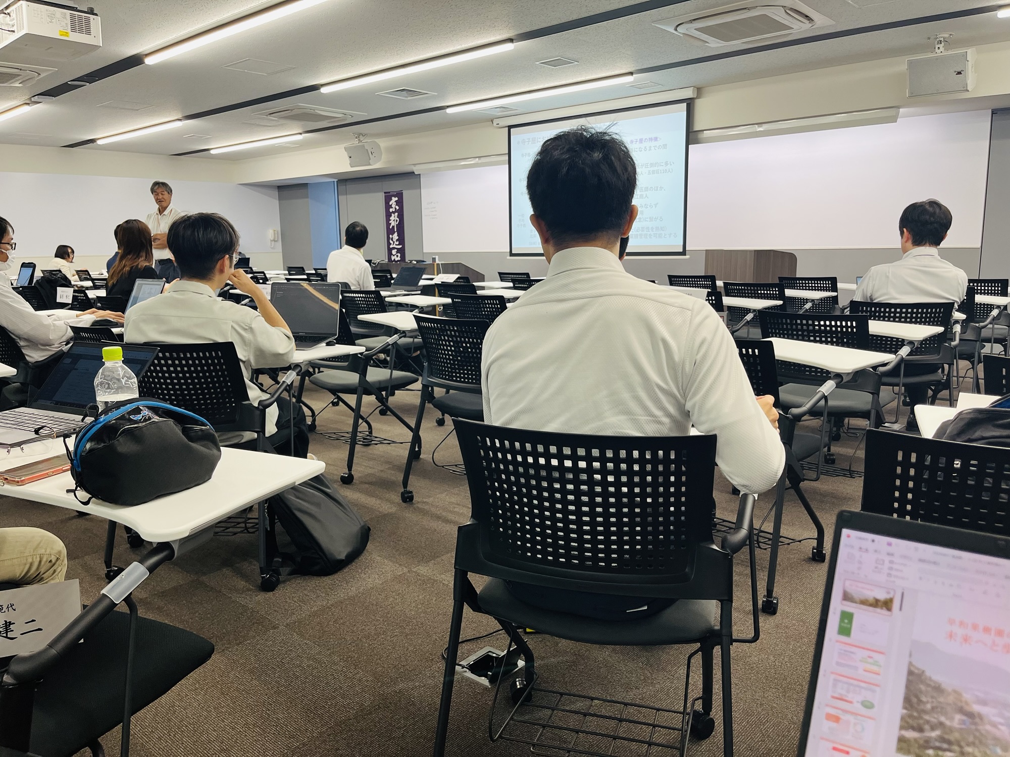 この後、休憩を挟んで私の出番でした。準備はそこそこに、「はい、秋竹さん宜しくお願いしますー」とお呼びいただいたので、小一時間うちの取り組みをお話してきました。まぁ、内容はいつもとほぼ一緒ですが、せっかくの管理会計ゼミでしたので、うちの部門別採算制度などを細かくお話させてもらいました。加登先生、納得してくれたかしら。。。