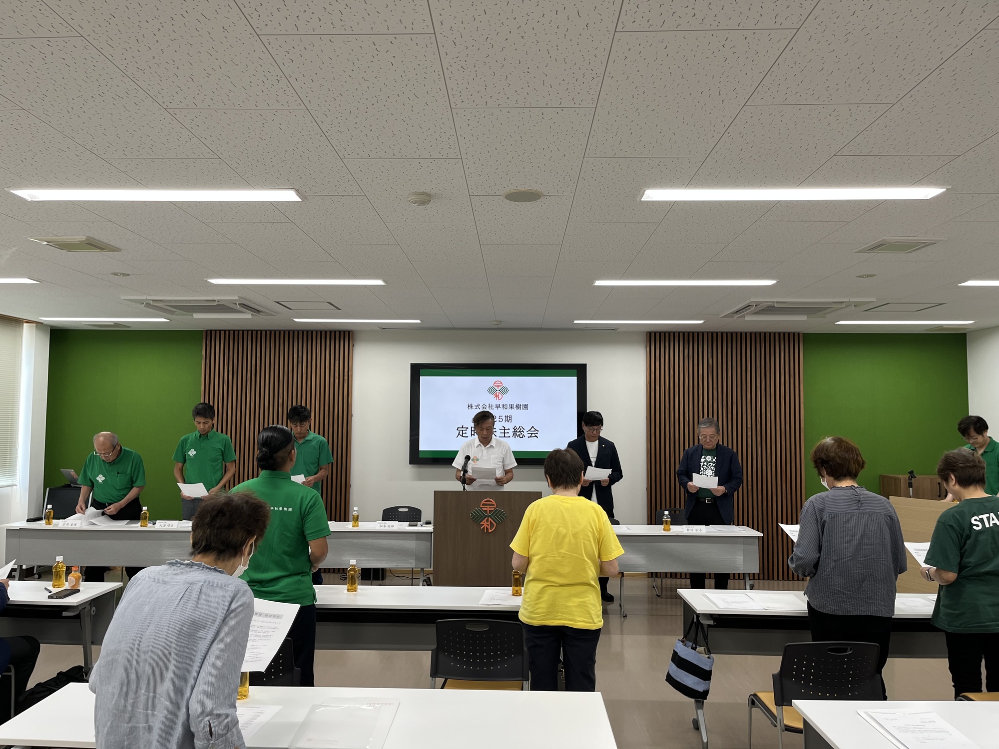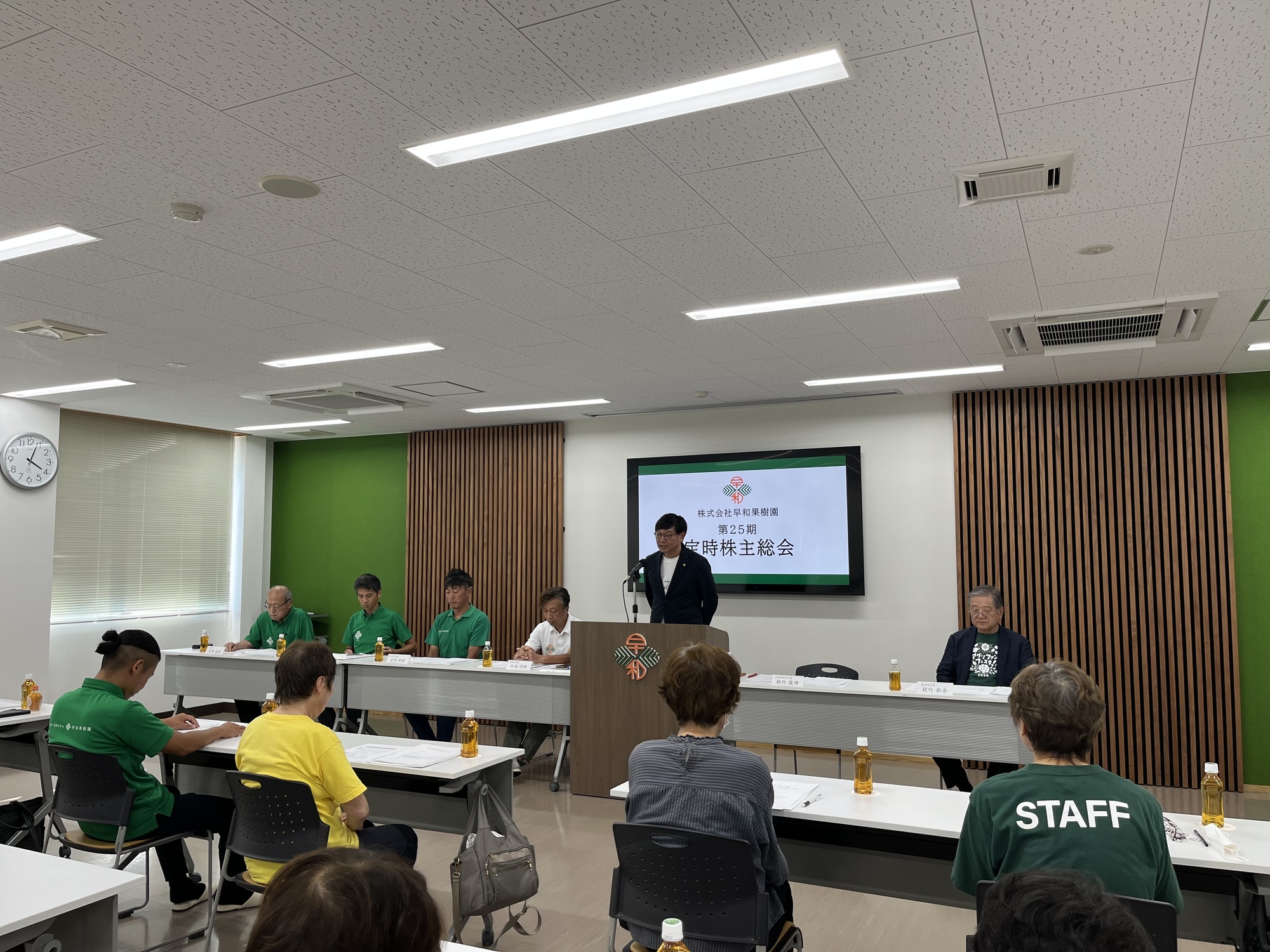 早和果樹園では6月に決算期を迎えた後、毎年この時期に株主の皆さまにお集まりいただき、前期の営業報告ならびに収支決算報告、今期の事業計画報告を行います。
