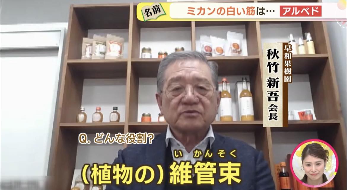 みかんの白い筋「アルベド」を解説する一人として会長が出演しました🍊