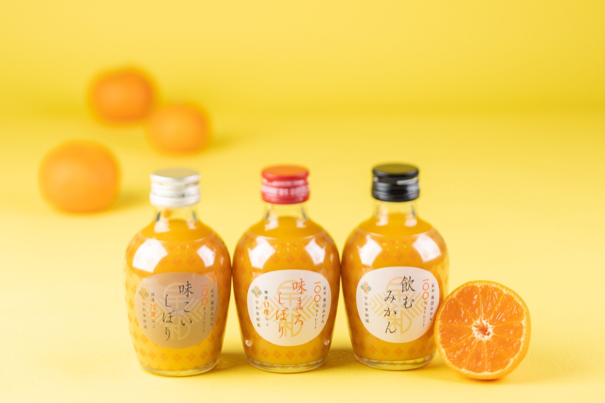 有田みかんを試食していただいただけでなく、「飲むみかん」「味まろしぼり」「味こいしぼり」の3種類のを試飲していただき、口当たりや濃厚さの違いを楽しんでいただけました😊
