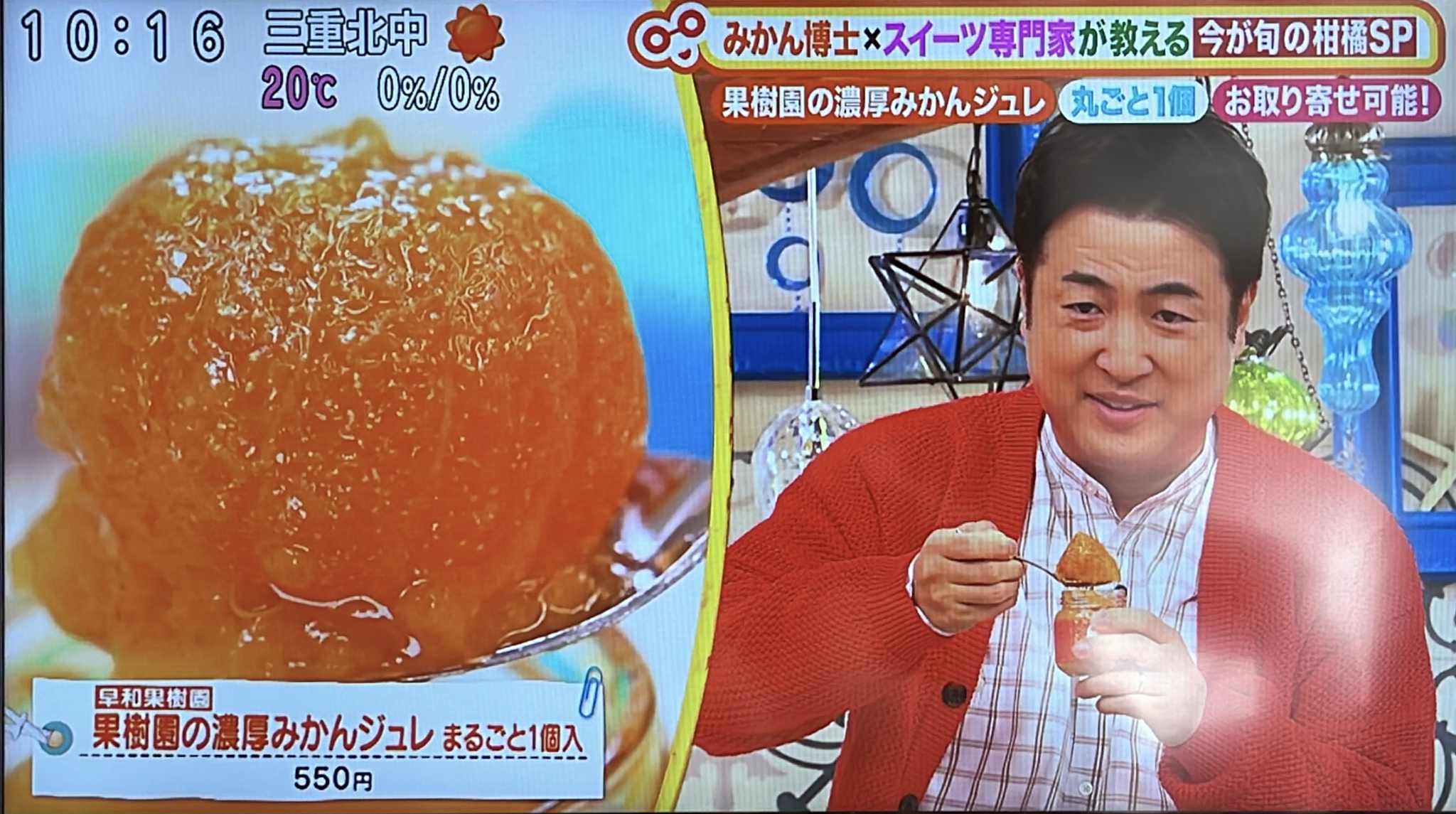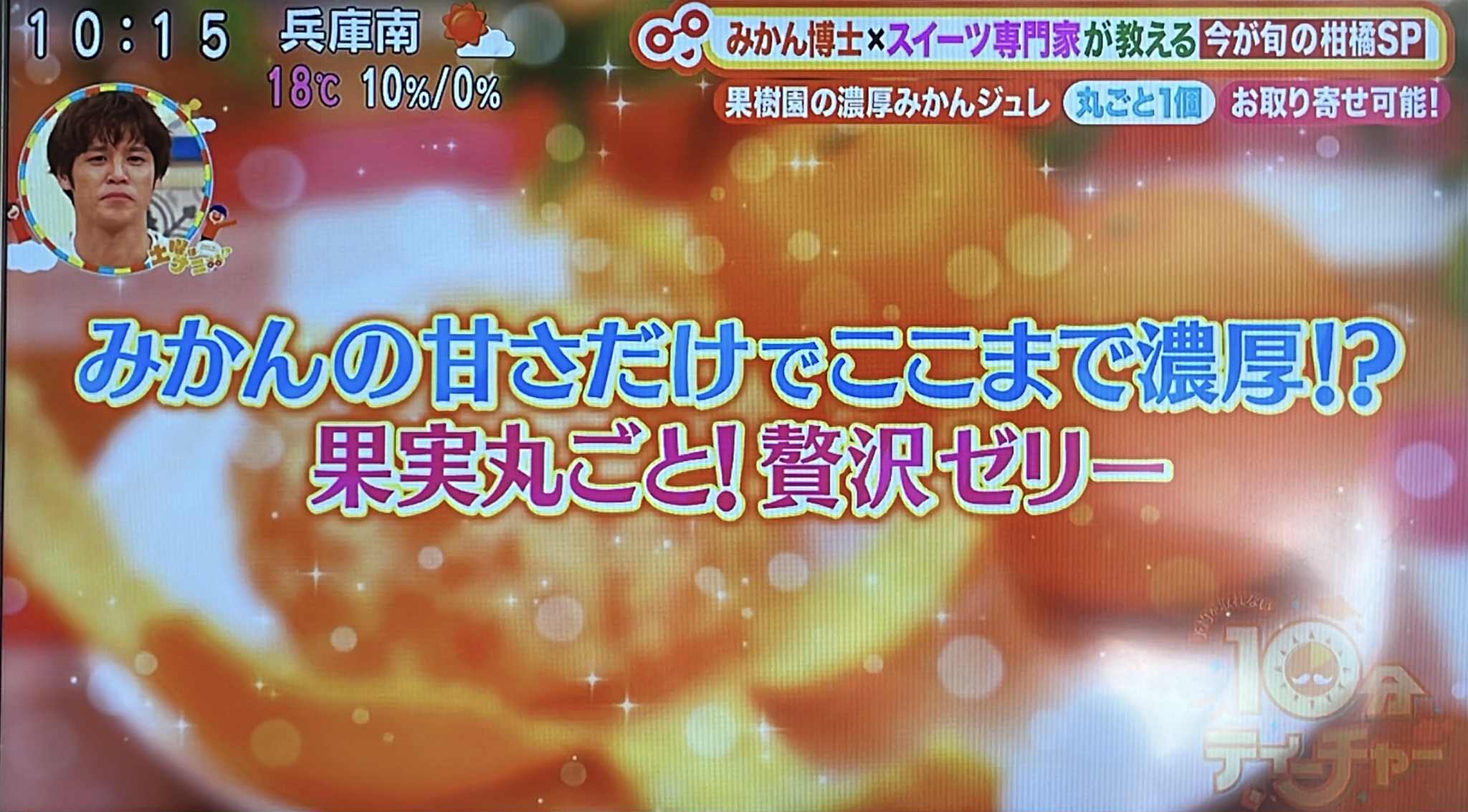 2025.11.15 メディア・表彰 関西テレビ「土曜はナニする!?」で『果樹園の濃厚みかんジュレまるごと1個入』 が紹介されました!