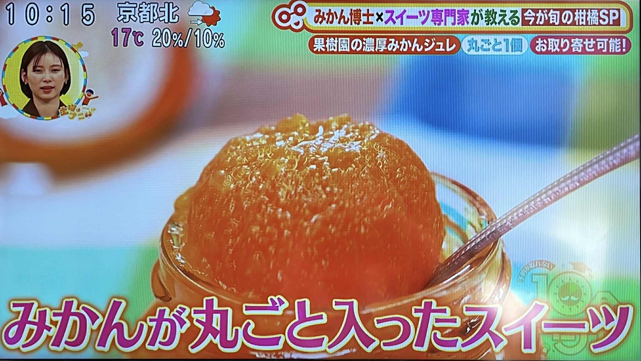 今回「果樹園の濃厚みかんジュレまるごと1個入」が紹介されたのは、 “今が旬の柑橘SP” の番組コーナー。