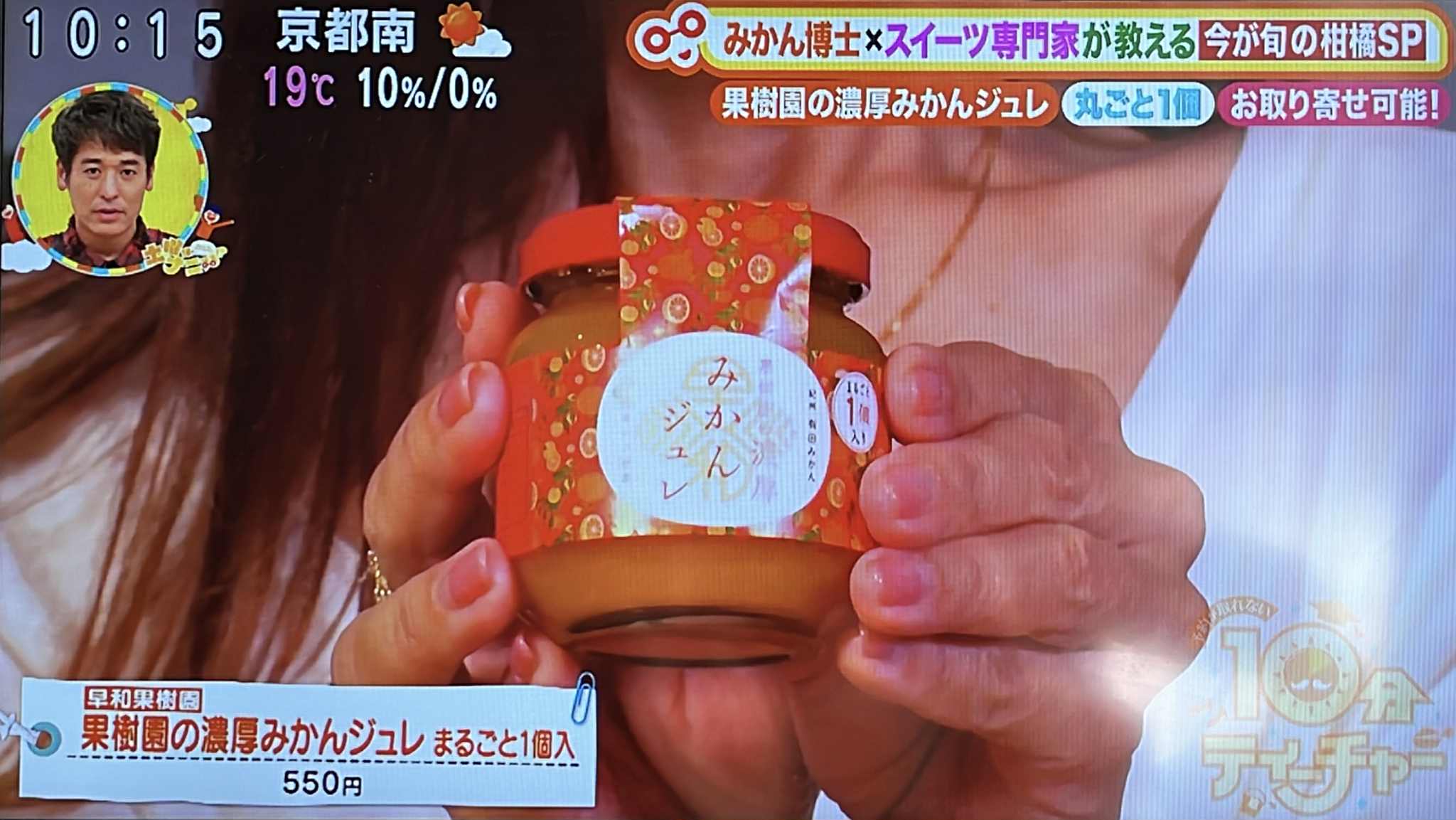 2025年11月15日、関西テレビ「土曜はナニする!?」にて、『果樹園の濃厚みかんジュレまるごと1個入』をご紹介いただきました🍊