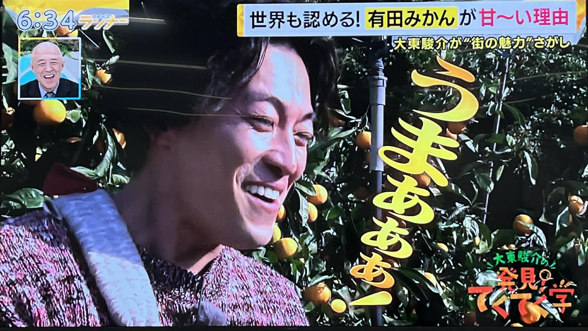 大東駿介さんが、社長のアテンドのもと、みかん畑や選果場、直営店「果汁と果実」を訪れていただき、有田みかんがあまーく育つ理由や、そのみかんを余すことなく使用する早和果樹園の取り組みについても丁寧に取り上げていただきました✨