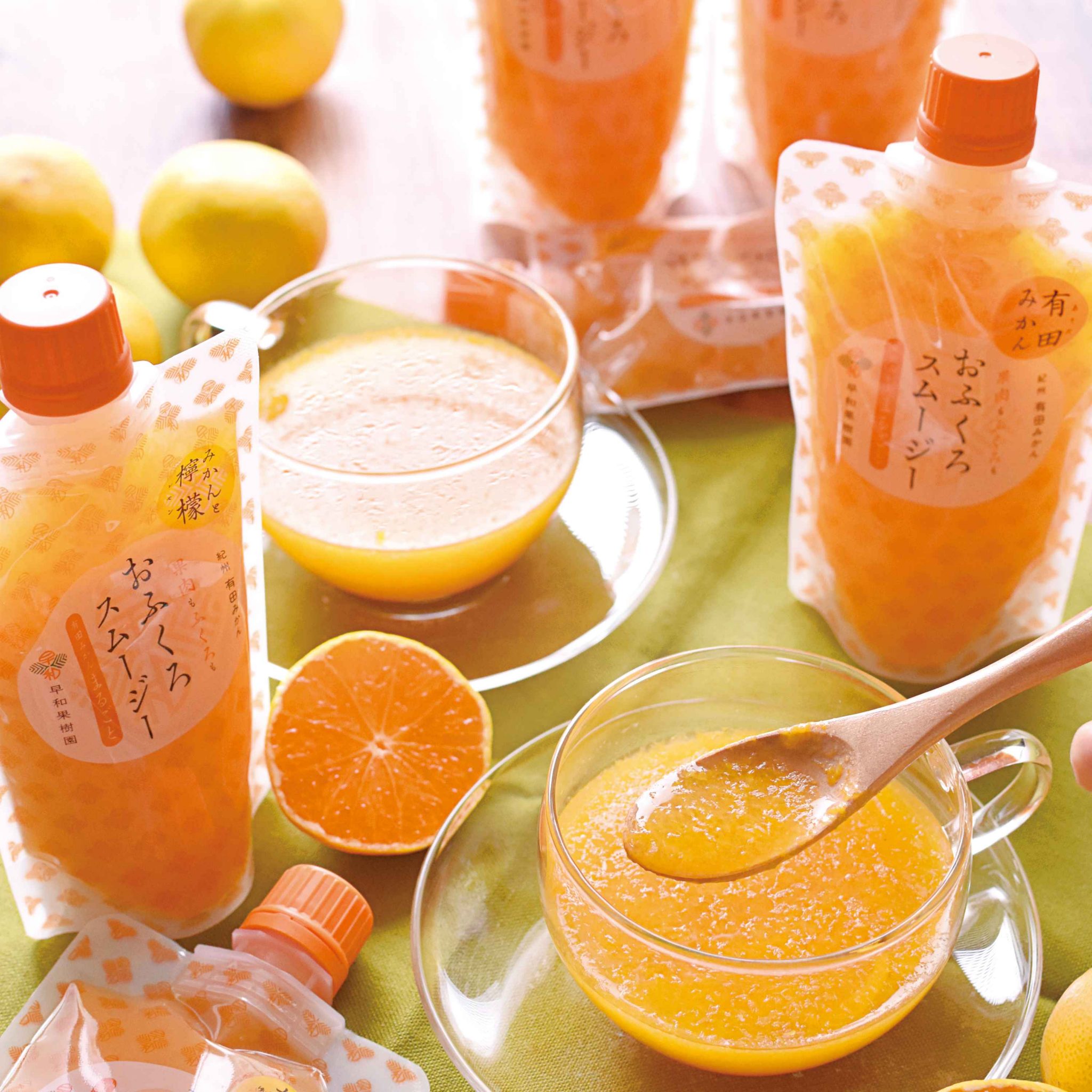 生のみかんだけでなく、有田みかん100%ストレートジュース「飲むみかん」、果汁と薄皮を使用した「おふくろスムージー」、乾燥させたみかんの皮で作った「蜜柑七味」も試食していただきました😆