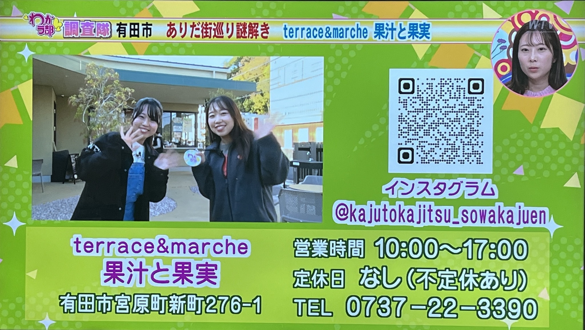 2025年12月5日、テレビ和歌山「わかラ部」にて直営店『terrace & marche 果汁と果実』が紹介されました🍊