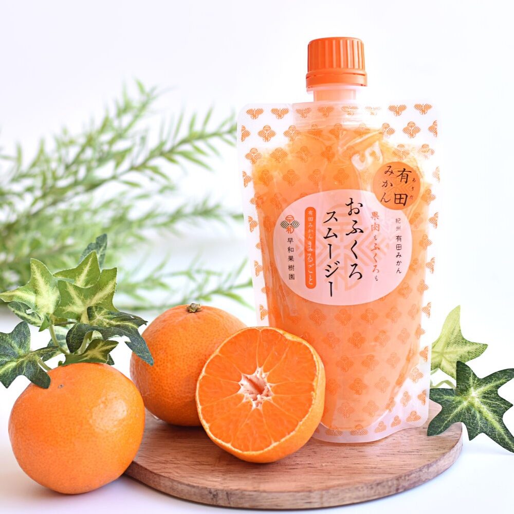 おふくろスムージーは、みかんの果汁や果肉だけでなくみかんのふくろもたっぷりと使用したスムージー。