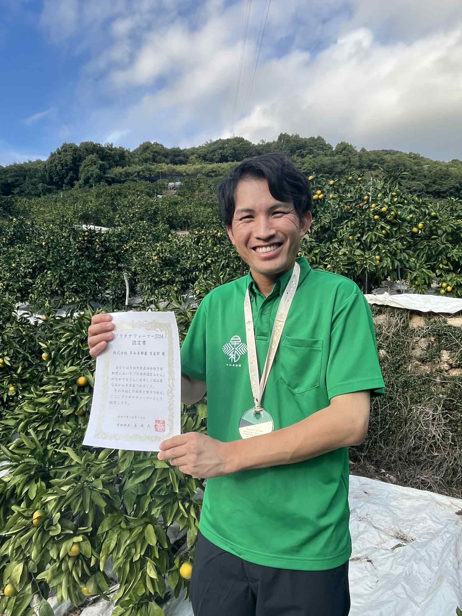 このたび、早和果樹園 生産部が、有田市より「2024プラチナファーマー」の認定をいただきました!